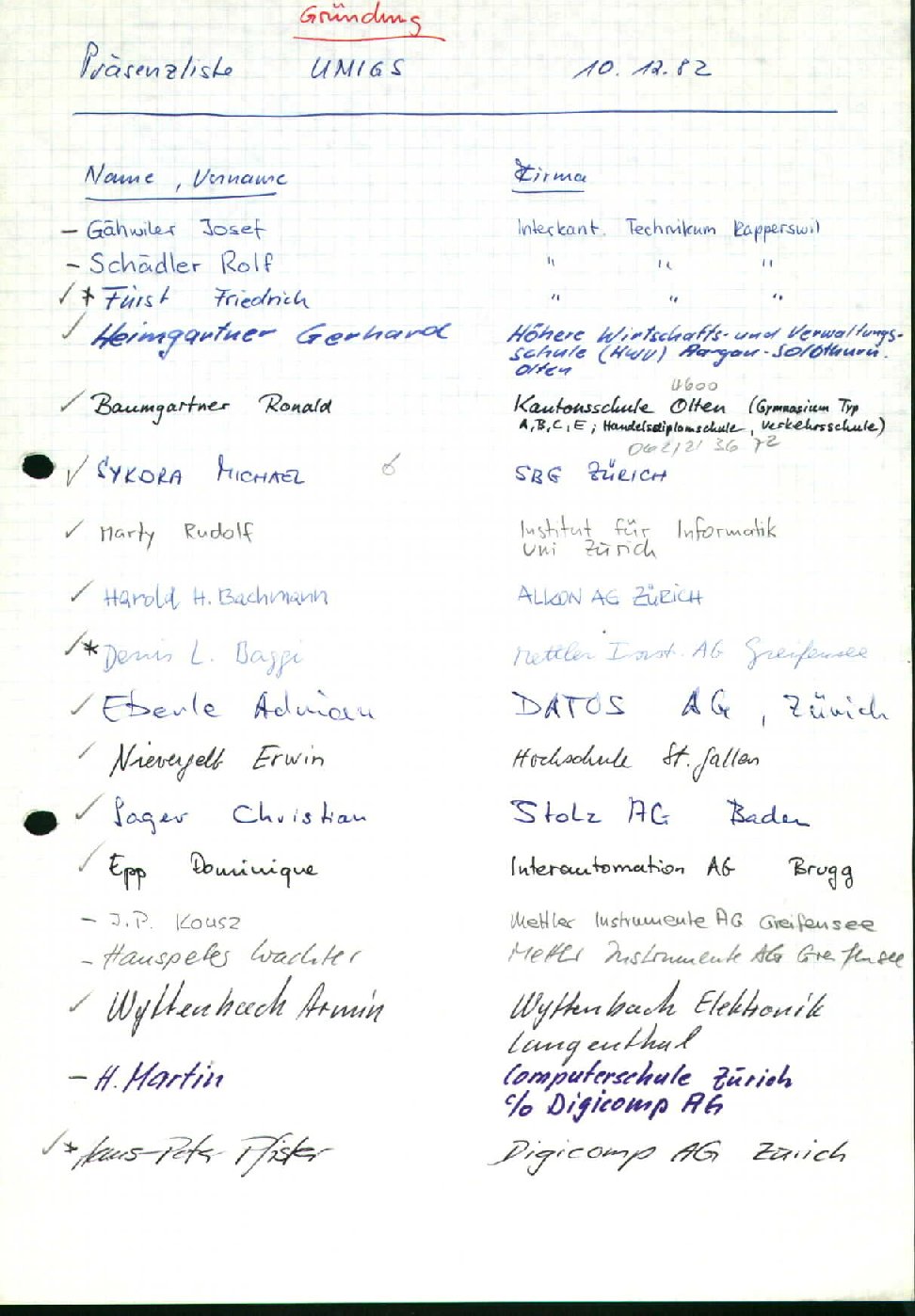 Vor dreissig Jahren, genau an meinem Geburtstag haben wir – siehe Teilnehmerliste – den Verein UNIGS gegründet. UNIGS stand für Unix Interessengemeinschaft Schweiz. Damals zählten wir noch zu einer handvoll Verrückten, welche nicht mit den damals gebräuchlichen Betriebssystemen wie zum Beispiel VMS arbeiten wollten. Uns begeisterten die offenen Systeme und die damals modernen Programmiersprachen wie C oder später C++.