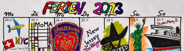 Auf einer Zeichnung, die wir zur Erinnerung angefertigt hatten, ist diese Reisewochenplanung festgehalten – eine bunte Mischung aus Kunst, Kultur, New York, Schiff und Hamburg. Genau das, was wir uns unter Traumferien vorgestellt hatten.